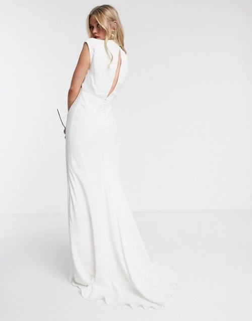 The beautiful ivory Rebecca ruched plunge satin wedding dress from Asos Edition is a guaranteed head-turner, you’ll find this piece as feminine as it is timeless. It features a V neckline, a stunning silhouette and gorgeous floor sweeping skirt. Perfect for a bride this season.