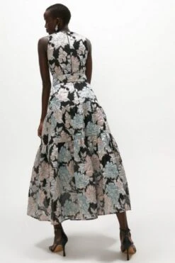 Wallis Coast Premium Jacquard Tiered Midaxi Dress, Black/Multi