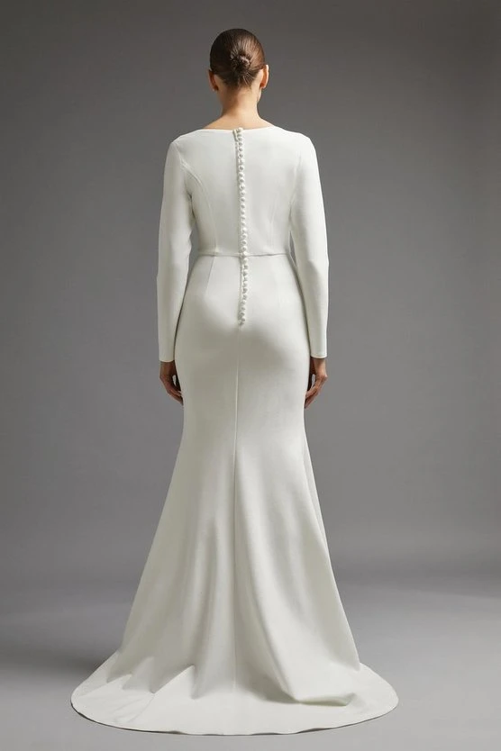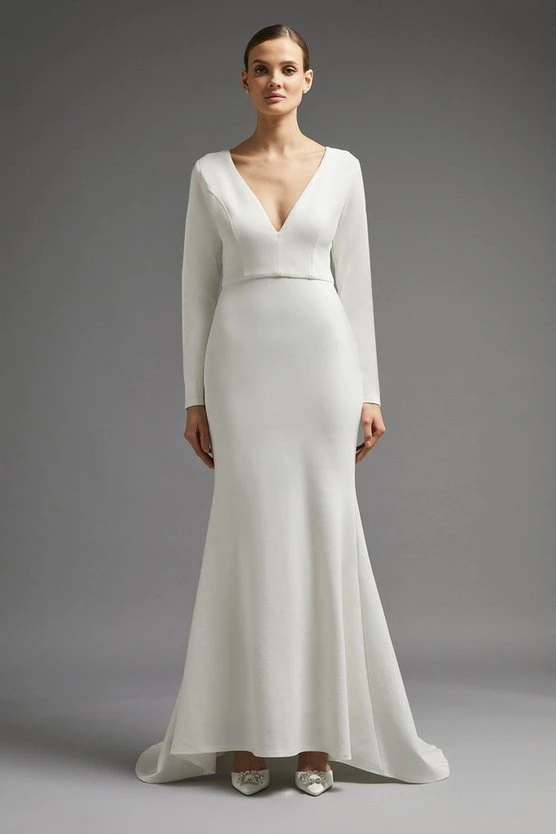 Create a stunning bridal look with this elegant Deep V Maxi Dress With Train, perfect for a modern bride.