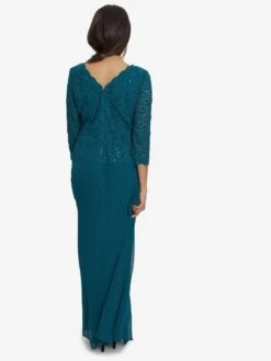 Gina Bacconi Jeanette Lace Dress With Chiffon Skirt, Peacock/Teal Green