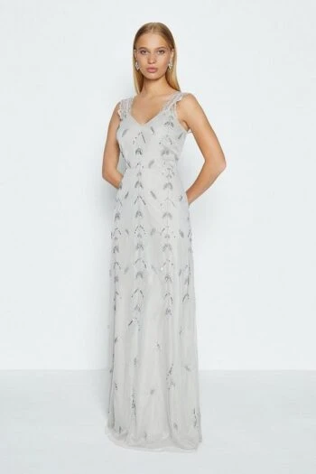 Stunning silver Lace Strap Embellished Maxi Dress from Coast is ideal for your special occasions.