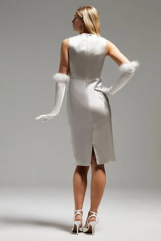 A exclusive collection that marks history in the making, this Coast x Norman Hartnell dress is a beautiful tribute to his most iconic styles. Crafted out of a luxe satin fabrication, the piece features a round-neck sleeveless bodice, nipped-in waist and a fitted pencil skirt. An eye-catching bow detail is a regal touch.