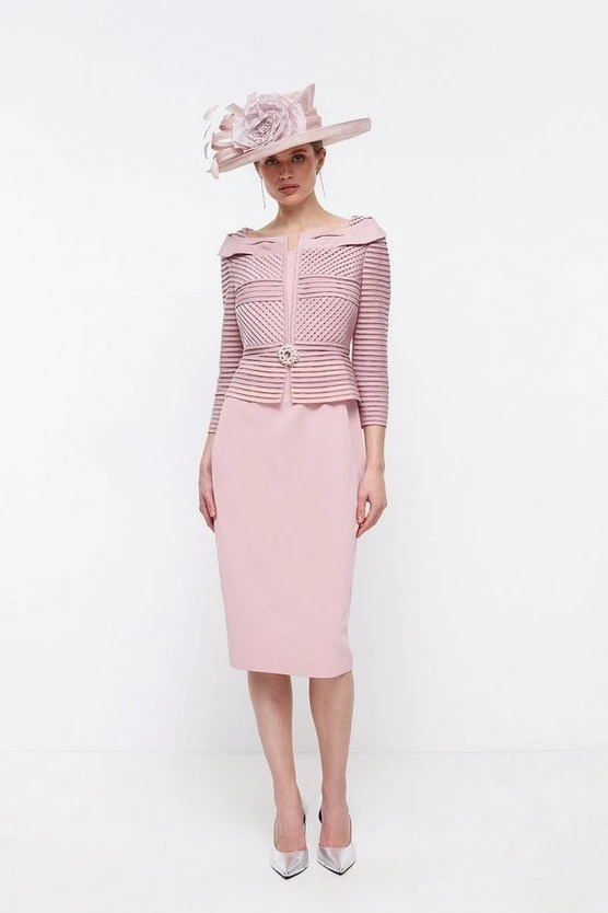 Coast Premium Stretch Crepe Scattered Jewel Bodice, Mink/White