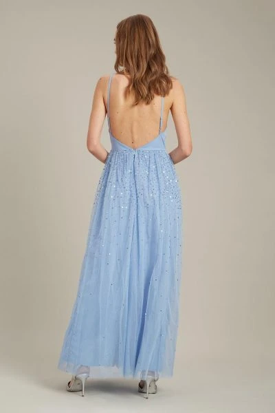 Embellished Strappy Tulle Maxi. 100% Polyester. Cool hand wash only.