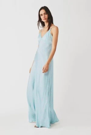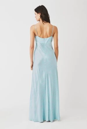 For weddings, summer garden parties and beyond, the Primrose is an ethereal design that puts a fresh spin on the classic slip dress. Made from heavy printed satin fabric obtained from sustainable sources, it features adjustable straps and a back centre zip fastening. Maxi in length, it’s cut on the bias and beautifully floaty.