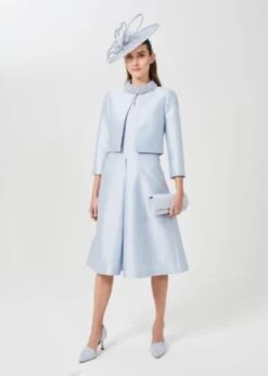 Gina Bacconi Camira Lace Shoulder Bead Tier Jacket Dress, Winter Cream