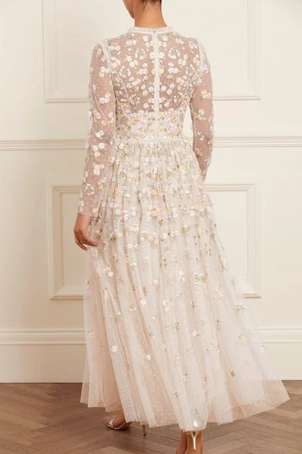 NEW SEASON. The Wildflower Ditsy Ankle Gown in Cream / Primrose. This intricate style is designed with floral embroidery in soft pastel shades in the most romantic colour palette. Designed with a statement skirt featuring pleats at the waist and full layers of net to create dramatic volume. The Wildflower is a truly beautiful piece.