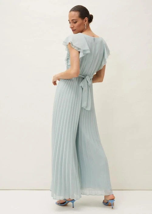 Pleated through for wonderful movement, our Hallie jumpsuit adds something a little different to your occasion wear this season. Statement in design, this style is cut in a dramatic wide leg silhouette and is finished with frilled short sleeves and a waist tie for added definition.