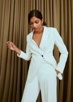 This sophisticated suit jacket is cut in a sharp silhouette, with a contrast single button fastening on the bodice, and gathering at the waistline. Coordinate with the matching Solange Suit Trousers for a look that will take from day to night in an instant with just a switch of styling and accessories.