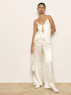 You’ve fallen. The Madrid is a matching set with a sleeveless tank and pants. It has adjustable spaghetti straps, a low V-neck, and a single button closure. The pants have a loose fitting leg and a fitted waist.