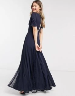 ASOS DESIGN Bridesmaid Maxi Dress With Lace Insert Panels, Navy Blue