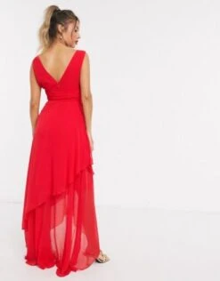 ASOS DESIGN Soft Layered Maxi Dress With Tie Waist Detail, Fire Red