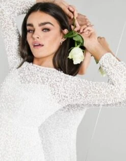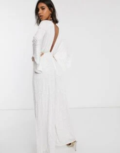ASOS EDITION Beaded Kimono Sleeve Wide Leg Wedding Jumpsuit, Ivory