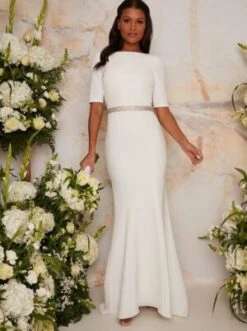 Chi Chi Bridal Wedding Dress With Scoop Back Design In White